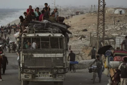 Με τα πόδια, με ποδήλατα, με οχήματα, Παλαιστίνιοι έφευγαν μαζικά από την πόλη της Γάζας, στόχο χερσαίας επιχείρησης του ισραηλινού…