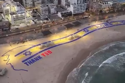 Μήνυμα ευγνωμοσύνης στον Τραμπ από το Τελ Αβίβ – Γιγαντιαίο “ευχαριστώ” σε παραλία